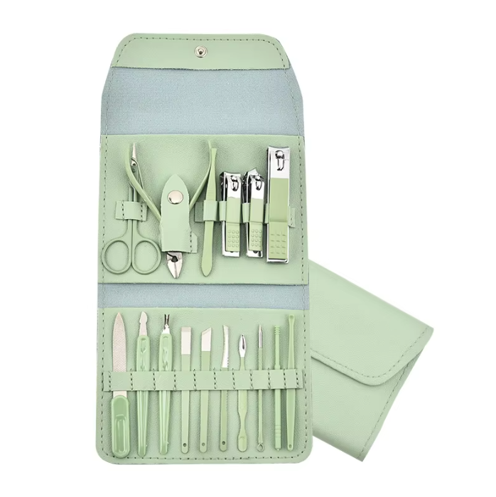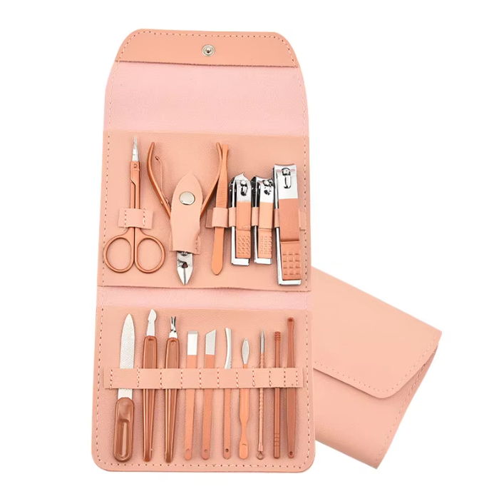 Keep your nails neat and stylish anywhere! This compact grooming set includes 16 premium stainless-steel tools for hand, foot, and facial care — all packed in a sleek, travel-friendly leather case.