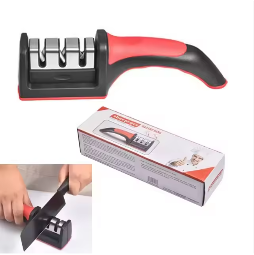 This 3-Step Manual Knife & Scissors Sharpener is designed for precision sharpening, giving your kitchen tools a razor-sharp edge effortlessly. With a non-slip base and ergonomic handle, it ensures safe and easy sharpening every time. Perfect for knives, scissors, and even serrated blades.