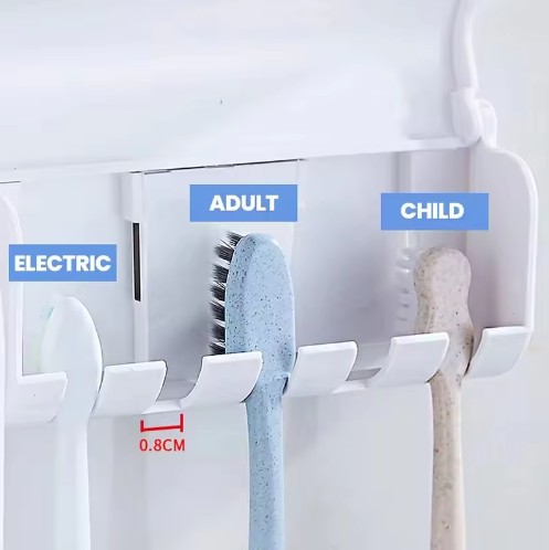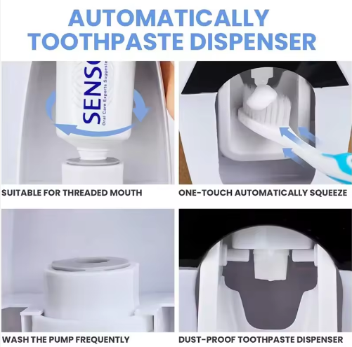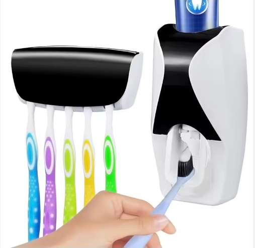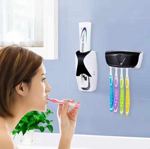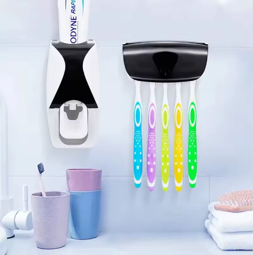 Streamline your bathroom routine with this practical two-in-one solution. The automatic toothpaste dispenser eliminates messy squeezing and waste, while the integrated brush holder keeps your toothbrushes organized and within reach. Crafted from durable plastic, this compact set mounts easily on any bathroom wall, making it ideal for families and shared spaces. Hygienic, space-saving, and convenient—a smart addition to modern bathrooms.