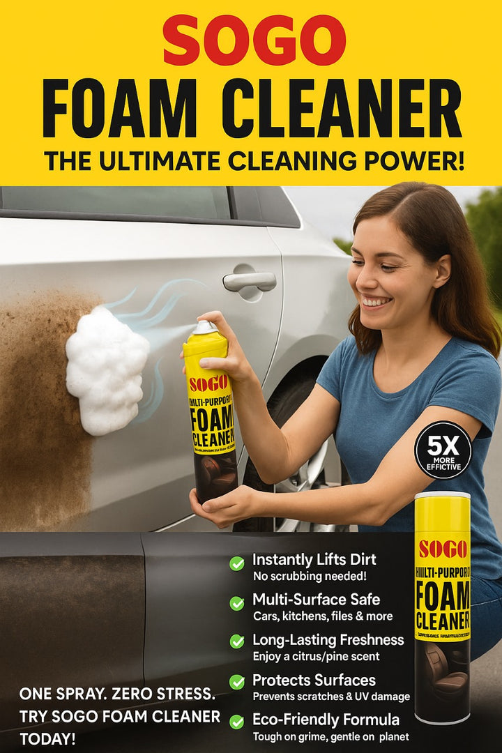 Professional-grade SOGO All-Purpose Foam Cleaner for deep cleaning kitchens, bathrooms, and household surfaces. This powerful foaming action cleaner effectively removes grease, grime, and stubborn stains from stovetops, countertops, and appliances. Easy-to-use spray formula works on multiple surfaces including glass, metal, and ceramic. Perfect for home cleaning, kitchen maintenance, and professional cleaning tasks.